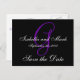 Save the Date, Initial, Monogram, Black, Purple Announcement Postcard