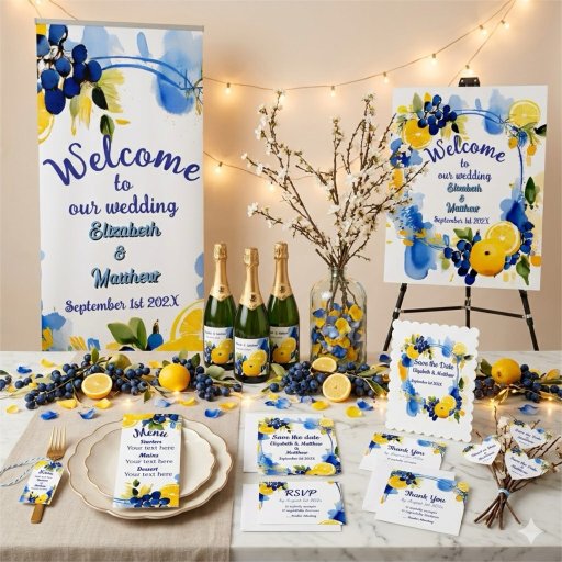 This "La Dolce Vita" save the date will turns your wedding into wonderful Italian tale. Feel the magic of the Mediterranean blue and Tuscan yellow.
