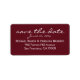 This label features a simple design with "save the date" in a handwritten font. Please make sure you're ordering the label size you want. There are three options ranging from a large shipping label to the traditional return address label.