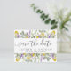Announce your special day in fresh, romantic style with this Lemons and Lavender Save the Date card. Featuring original watercolor illustrations of vibrant lemons, delicate lavender sprigs, and lush green foliage, this design perfectly captures rustic charm with a Mediterranean twist. A beautiful way to give guests a first glimpse of your wedding, it’s fully customisable with your names, date, and location.