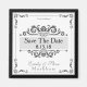 Save The Date magnet for the refrigerator shown. This one is square and shown in a black, white and silver-grey vintage flourish theme. Preformatted text for you to personalise with names and date. Customise this item and change the text to yours.