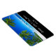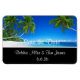 Save the Date flexible magnet is shown with a photo print of a beautiful tropical beach.