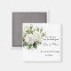 Save The Date magnet is shown with a lovely watercolor of a lovely white roses print.