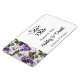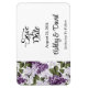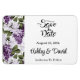 Save the Date magnet is shown in a classic formal layout in the colour white with Black text and script text highlighting the Bride and Groom names and accented with a lovely lilacs floral print.