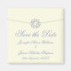 This stunning, sophisticated custom Wedding Save the Date Announcement magnet features an ivory background with a simulated envelope style flap and a silver colour broach ecrusted with diamonds and a pearl. The text on this Save the Date magnet is in a delighful shade of blue designed to compliment the "sparkle" of the diamonds.