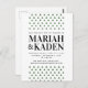 Small forest green triangles over a clean white background, make this minimal save the date announcement the perfect way to invite your guests to your outdoor wedding! Modern and sleek lettering keep this invitation simple and clean while the triangles can represent mountains or trees. Personalise the invitation by adding a photo on back, as well as all your wedding information.