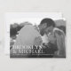 Save the Date Wedding Announcement. Modern minimalist text over full-bleed photo.