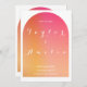 This is a modern, orange and pink boho arch, Save the Date, Wedding Card/ Invitation. It is in summery hot pink and orange gradient / ombre colours with elegant white typography /script. On the front it says, "Save the Date", with space for your names, the wedding date, location and space for more information. On the back it also says the "Save the Date", with space for your initials, and the wedding date. This minimal and summery design is perfect to let your family and friends know about your wedding date, ahead of sending them their wedding invitation. To personalise, simply type your names, details, the location, date, and initials, into the personalise this text box. Here you can also make changes any of the rest of the text, if you want to. To change the colour or font, check out the design editing tool. If you need help with personalisation, or for a custom design contact me via zazzle chat or email: ursuladawnmoon@gmail.com