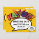 Personalise with your names and details to announce the date of your special event. Comic book pop art themed modern, fun retro design, perfect for weddings, bridal showers, baby showers, baptisms, engagement parties, anniversary celebrations, graduations, birthday party and other special events throughout the year! A cool, trendy and fun design that puts the wham zap pow into your day. Designed by Thisisnotme©
