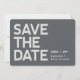 Pick this elegant save the date from PiPo Press. It features a solid soft grey background and a clean, modern, all caps font. When your guests receive this 5" x 7" card with rounded corners, they will know exactly how special your celebration will be.