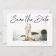 Save the Date Wedding Announcement. Modern simplicity pen stroke handwriting script text over centred photo. Optional wet sand backer. Completely versatile do-it-yourself style layout. Easily adjust the size, style and placement of all text elements. White mist filter is used for display, but you can change this by clicking on the advanced Customise mode.