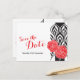 Save the date wedding dianthus modern luxe, black, white and a splash of bright red postcard. Personalise with your own wedding details. Designed by Sarah Trett.