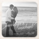 Save the Date Modern Swash Script Announcement Square Paper Coaster