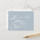 Save the Date Modern White Foliage on Dusty Blue Postcard
