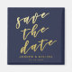 NewParkLane - Magnet, with 'Save the date' in elegant faux gold foil script typography, against a navy blue background. Easy to customise in Zazzle with your own names, date or other text for a personalised design.