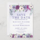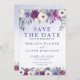 Periwinkle, fuchsia, and blush watercolor floral save the date announcement, with a very light peri wash textured background. Customise names, dates, and information.