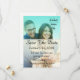 Announce your Engagement with this Elegant Save The Date Couple Photo Wedding Announcement Card. Featuring a romantic sky blue filtered photo in the background—and a Christian Cross that says the beautiful & sentimental scripture verse: Two Shall Become One. Modern black hand lettering/Script. Make necessary changes to the photo/colours/text/font using the Edit Button/Design Tool.