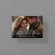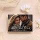 This design features a save the date, weddings card, with a simple, elegant, classy style simple typography, calligraphy script, and a classic, photo template, with a scannable QR code template.