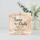 The square format of the invitation adds a modern twist to the rustic theme, creating a unique and eye-catching design. The combination of wood grain elements and personalised details makes this Save the Date card a memorable keepsake for your guests.