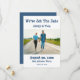 A Save The Date Photo Wedding Announcement Casual Card designed with your favourite couple's photo. The front side text includes: We've Set The Date, the Bride and Groom's first names, Your Wedding Date, Wedding Location, and Invitation To Follow in blue on a white background. The reverse side is matching blue background. To personalise with your wedding details, simply replace the sample photo using our easy template. Click FIT and ensure the image is positioned in the centre. Next insert your text details following replacing the sample. This card is available in print and download.