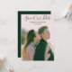 A Save The Date Photo Wedding Announcement Card designed with your favourite couples photo and your personalised details. The front text includes: Save The Date, The Bride and Groom's First Names, and Wedding Date. The reverse side text includes: The Wedding Location and Formal Invitation To Follow, on a dark background with white hearts. To personalise, simply insert your image into our easy template. Click FILL to cover the front. Next insert your text details, replacing the sample. Note: Font and Background Colours can be changed to compliment your image using our easy Colour Picker Tool.