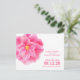 Save the date postcard with a camellia pink watercolor flower art. Watercolor art and design by Sarah Trett. www.sarahtrett.com for www.mylittleedenweddings.com