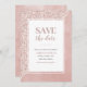 Save the date invitation in dusty pink glittery and watercolor pattern.