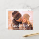 Stylishly modern save the date postcards with chic white script on the front. Easily add your custom photo and text to the front, along with your custom save the date details on the back.