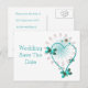 Wedding save the date postcard mint coloured butterflies heart design. You can customise this mint coloured wedding save the date postcard with your wedding details. Should you require any help with customising then please contact us through the link on this page. Mint coloured heart and butterflies design personalised wedding save the date postcard
