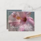 A Save the Date postcard featring a photo of a pink hibiscus over a background of sparkling clear ocean water. White text reads "Save The Date." Opposite Side features matching background.