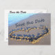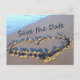 Save the Date postcards with a heart drawn in the sand. Personalise with your own info in the spaces provided, and get the matching postage stamps for a designer look.
