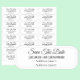 A set of laser cut, transparent save the date return address labels on clear self-adhesive stickers. This design has a two-line address, names that you can customize, and a script "Save the Date". Perfect for adding a minimalist return address to save the dates for a wedding or engagement party. Customize the couples' names and address information using the editor in the listing.