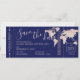 Rose Gold Pink and Navy Blue World Map Boarding Pass Save the Date Aeroplane Ticket Card with a cool modern design with a neutral light rose blush pink foil effect world map travel theme design. Text and background colours and layout is editable so you can create your own design using this template for a unique boarding pass which was designed with a destination wedding or travel theme wedding or vow renewal celebration in mind.