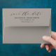 A unique design that matches our Rustic elegant collection. The envelope features a taupe beige outside colour with a whitewashed barnwood pattern inside. On the front flap an elegant calligraphy "save the date" header along with a template space to personalise with your return address to save time addressing your save the date cards. If you need help, additional colours or matching pieces please contact me (Maria) using the contact button below or directly at info@the52edit.com ...I'm happy to help!