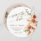 Announce your special day with this Save the Date Rustic Wood Cut Card, designed to resemble a tree trunk slice with natural wood rings. Featuring watercolor floral details in warm terracotta and boho tones, this unique and creative wedding announcement is perfect for country, barn, farmhouse, outdoor, and forest weddings. The round shape adds a truly engaging and timeless touch, setting the tone for a romantic and vintage-inspired celebration. Whether you're planning a boho-chic, rustic, or nature-themed wedding, this wood grain save the date card beautifully blends organic charm with elegance.