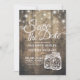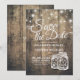 Save The Date Wedding Invitation Card Templates - Elegant Save The Date Lettering Script and Vintage Mason Jar String Lights on Rustic Wood Background.