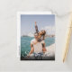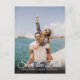 This modern script photo save the date card features your special photo overlayed with a script save the date above your names, date and venue in white text.