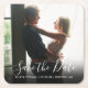 This simple, modern script photo save-the-date paper coaster features your special photo overlayed with a script save-the-date above your names, date and venue in white text. Designed by Thisisnotme©