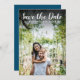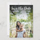 This modern script photo save the date card features your special photo overlayed with a script save the date above your names, date and venue in white text.
