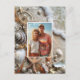 Save the Date postcard with your favourite photo. Beautiful tropical seashells, starfish, driftwood, pearls on a sandy beach. Perfect for your destination wedding.