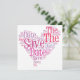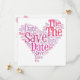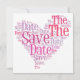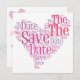 Save the date card in various shades of pink, heart shaped motif