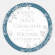 Save the Date Silver Blue Victorian Floral Lace Classic Round Sticker