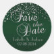 Save the Date | Silver Dots & Green | Personalise Classic Round Sticker