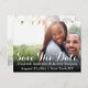 Save The Date | Simple Photo Template Postcard.The cover carries a photo of a couple, their names and the wedding date to be saved.Save the date text is in an elegant,script typography.Personalise and replace the photo , names ,dates and venue with your own.The back of the postcard carries transparent version of the couple photo as template. Easily replace it with your own.The text at the back mentions the names of the couple and dates and place of the wedding. Replace all the text with your own to make a personalised,stylish Save The Date Postcard.