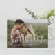 You're engaged! Spread your happy news and the date of your big day with this one-photo save the date. Your engagement photo will be the star of the show against the simple light green script of "save the date" and the subtly dotted backer can be easily changed to a colour that coordinates with your photo or your wedding by clicking the "customise" button. Let the happily ever after begin!