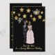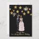 Save the date single card for a Halloween Wedding. The design is a black card with a Skeleton Bride and Groom, stars and ghosts. Thanks to Pixabay and Creative Fabrica for some of the elements in the design. The words on the back of the card can be changed.