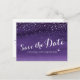 Save the date wedding starry night stars purple white postcard background sky painted in wash watercolor with a graphic star sparkle overlaid. Original wedding save the date postcard. Perfect for a star studded or evening wedding. Part of the starry night wedding set. An elegant exclusive design by Sarah Trett.