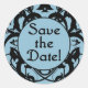 Beautiful Save the Date stickers for your envelopes. In soft blue and bold black. Circular design with black damask swirl motif. Make your envelopes special with these stickers!