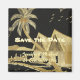 Custom save the date wedding magnet with tropical palm tree and Bali style house. Stylish black and beige design. Personalise text template for names of bride and groom and the special occasion date.