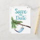 Save The Date Tropical Paradise - Featuring a vintage striped hammock hung on a large palm tree wedding/Engagement or general celebration poster art.